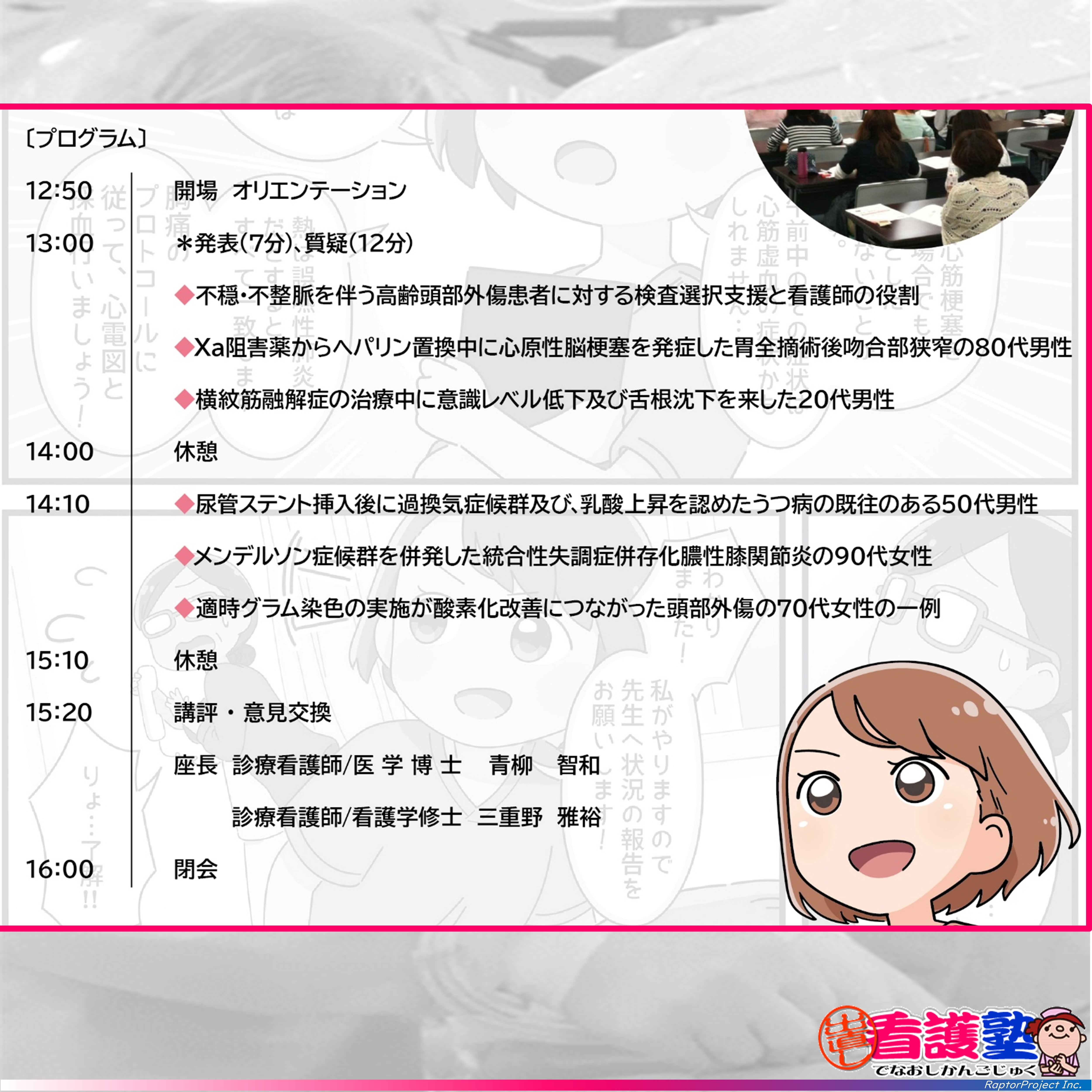 1人1人の症例を丁寧に振り返り、アセスメント力を引き上げます。